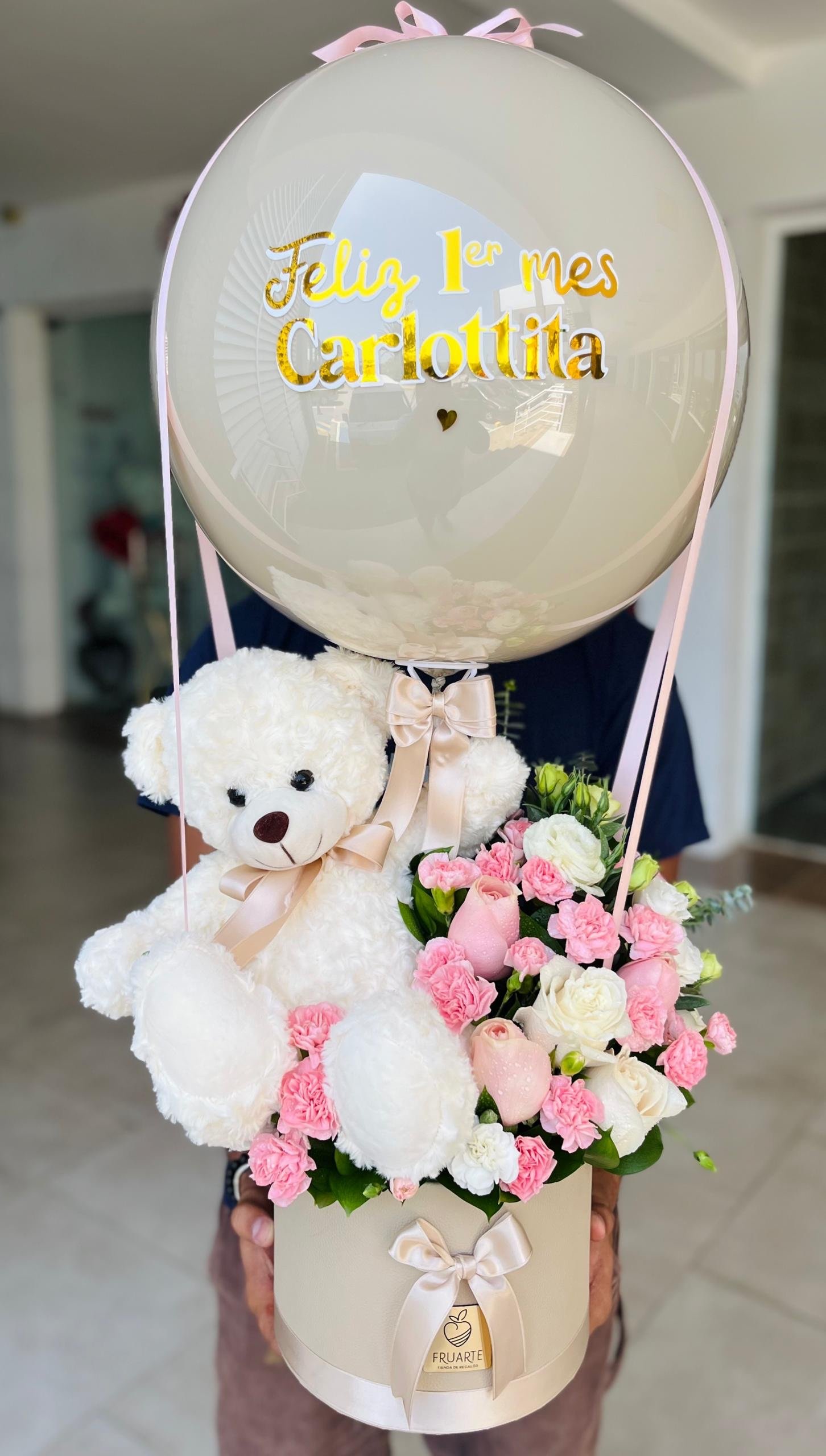 Caja de 35cm de alto por 15cm de ancho en Madera pintada. Incluye 5 bombones Ferreros Rocher y tarjeta dedicatoria.